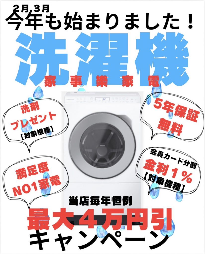 毎年恒例の 洗濯機キャンペーン を、2月・3月限定で開催中です✨